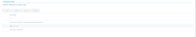 | Description | No | Text area | Insert the proper description for the availability filter. |