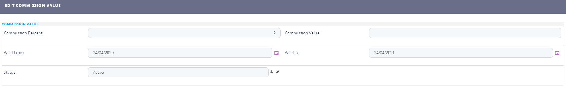 | Valid from | Date | Select the day when the commission value becomes applicable. |