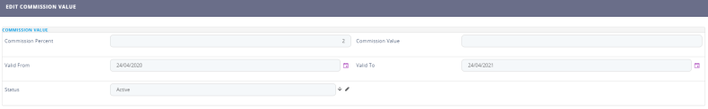 The value of a commission used in active contracts cannot be edited. Instead, you can modify the value's validity and add a new value with a future validity period. For details, see the Editing The Value Of A Commission Already In Use section.