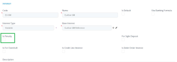 You can specify that an interest is penalty if you select theIs Penaltycheckbox in the Interest page: