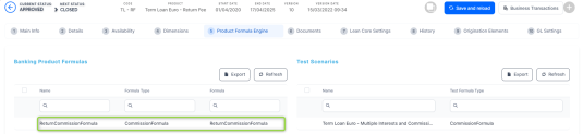 ReturnCommissionFormula banking product formula used within a term loan banking product definition: