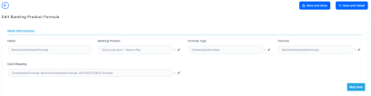 You can use complex formulas built with Business Formula to calculate different elements of banking products, such as commissions, or to determine the eligibility of a customer. To use formulas in conjunction with a banking product, creating banking product formula records and then associate them with the desired product. You can do so either from the product level, within the Product Formula Engine tab, or from the Formula dedicated menu.