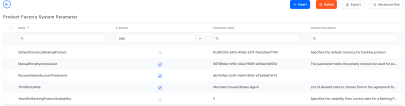 systemparameter and systemParameterOnPortalProfile entities!Here's the list of system parameters used by Banking Product Factory, along with their description: