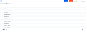 On the Transaction Types List page, you can add a new transaction type record or search, edit, and delete existing ones.