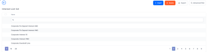 - In the main menu, click Product Factory > Banking Product Dimensions > Interest List, and the Interest List list page opens.