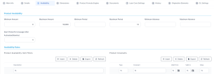 You can determine the monetary range and the time frame when the product is available for customers in the Availability tab.