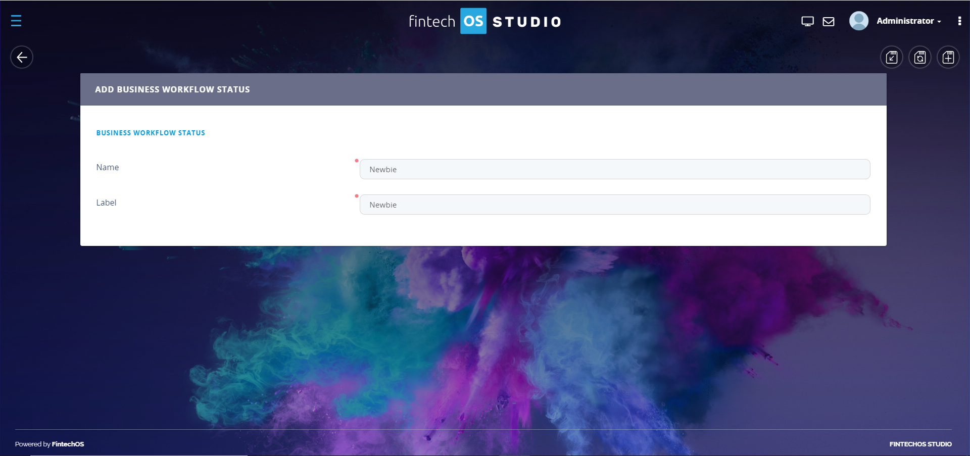 This section describes how to add a business workflow status from the Business Workflow Statuses section: