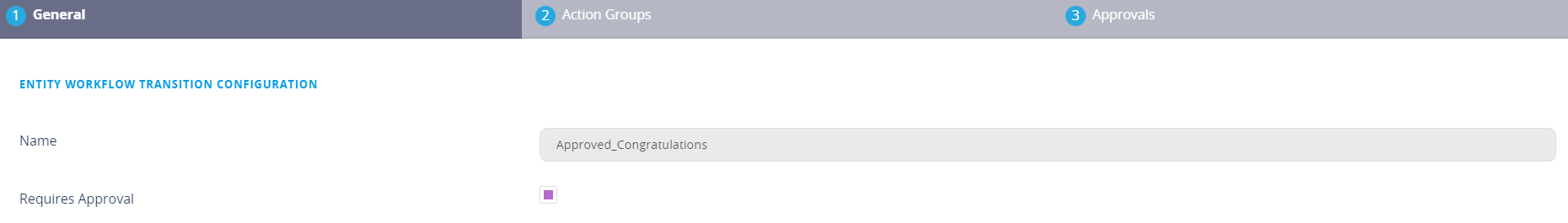 - Navigate to the Approvals Tab which corresponds to a transition.