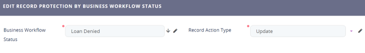 - In the field Business Workflow Status, select from the lookup the status to be protected.