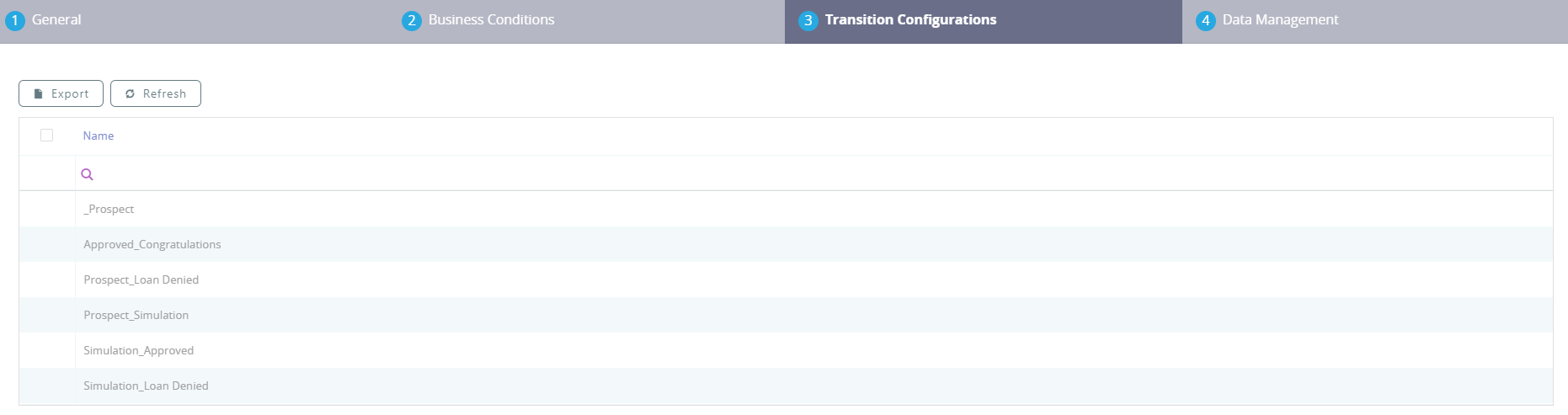 The configurations from this page cannot be inserted, only exported. They are created and listed as in the picture above when the Business Workflow is created using the menu entry named Business Workflow Designer.
