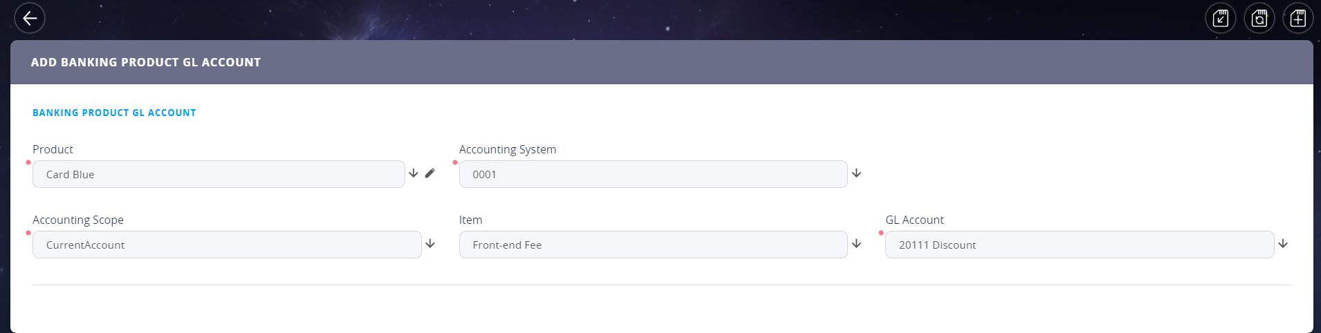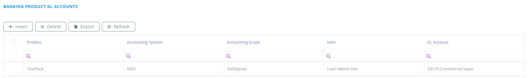 • Add a new banking product by clicking the Insert button at the top right corner.