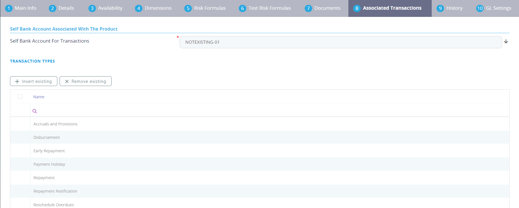 8. Associated Transactions - Transactions that are done to and from a banking product are found in this tab.