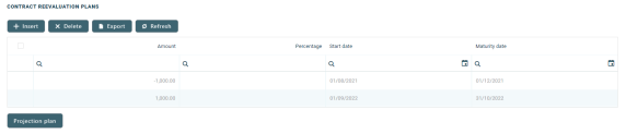 | Date for Review Interest Rate | No | Date | Enter the date for reviewing the interest rate applicable for the remaining amount. This date must be between Activation Date and Maturity Date, otherwise, an error is displayed.For variable interest, this field is automatically completed with the Reference Rate Date + Reference Interest Period of the underlying interest definition, from the base type interest attached to variable interest. You can edit this field. For months where the date is overlapped, the last day of the month is used for the calculation. |