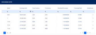 On the Exchange Rate page, you can add new exchange rates or search, edit, and delete existing ones.