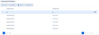 You can insert, delete, or export the calendar holiday data.