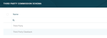 Third-party commission schema records are commission schemas that can be used only for the third-party management processes within Core Banking. They are used to categorize third-party commission types. For example, there are two schemas that come out-of-the-box with Core Banking: Third Party and Third Party Clawback.