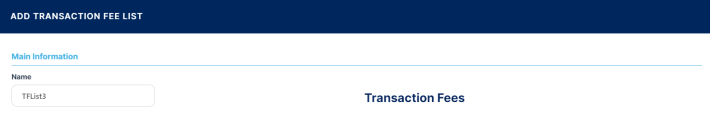 Click the Insert button on the Transaction Fees Lists List page to open the Add Transaction Fee List page.