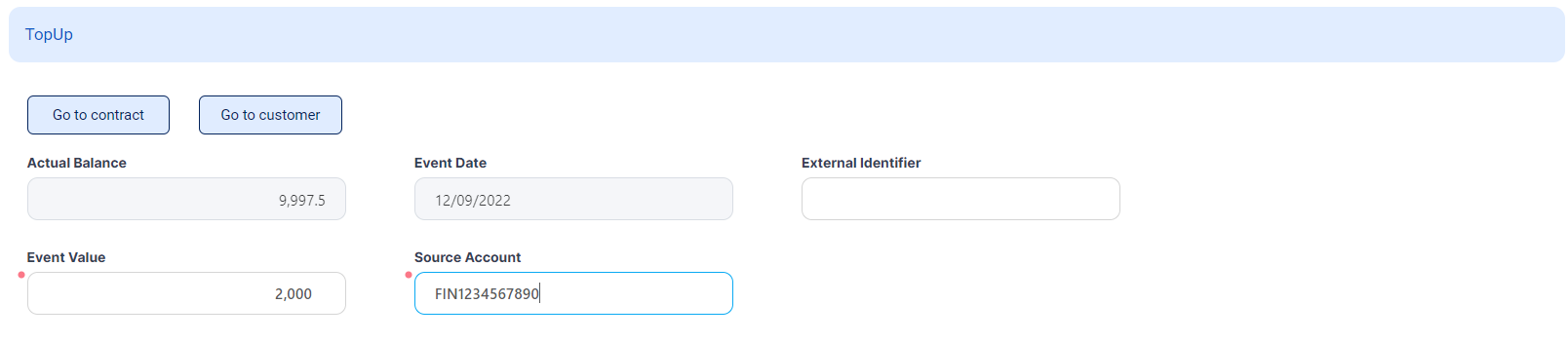 Enter the Source Account for the respective amount, the account from where the funds are taken to perform the top-up.
