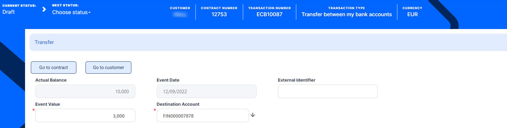 In order to add a transfer transaction to a contract through the menus available in Core Banking, follow these steps: