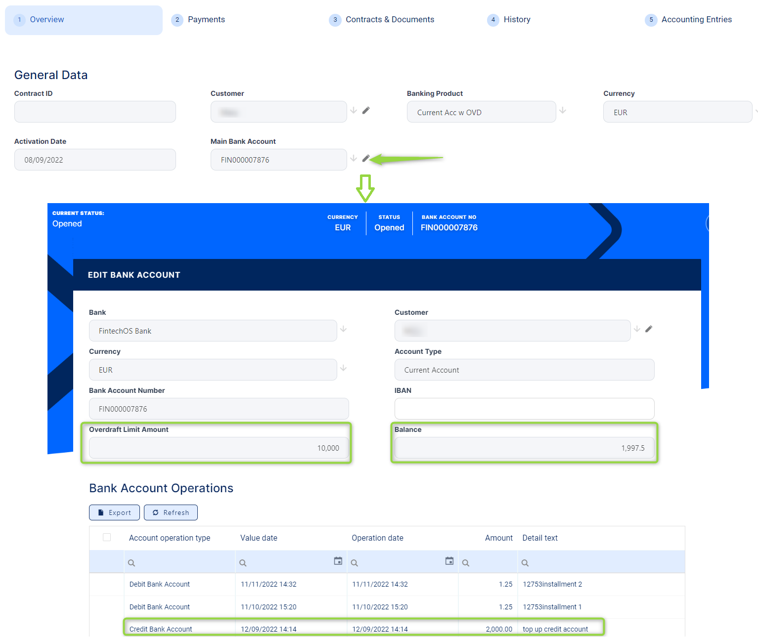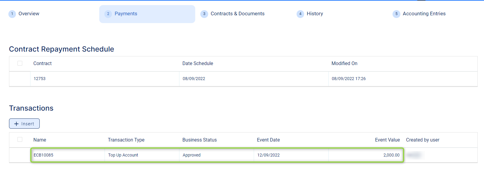 You can add top-up transactions to an approved contract via Core Banking's user interface or through API calls, using the Core Banking endpoints. Read more about these endpoints in the Core Banking Developer Guide.