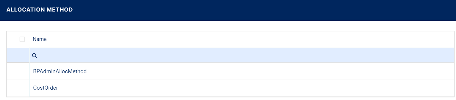 On the Add Allocation Method page, you can add new allocation methods or search, edit, and delete existing ones.