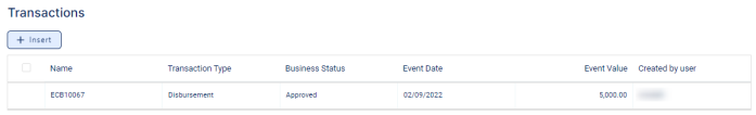 You can see the disbursement transaction's details and the calculated repayment schedule by double-clicking the transaction.