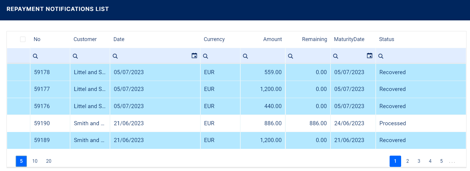 Or, click Repayment Notification menu item to open the Repayment Notifications List page.