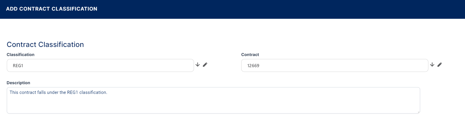 On the newly displayed Add Contract Classification page, fill in the following fields: