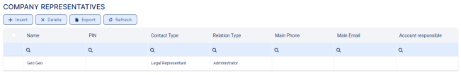 In this section, you can add new representatives, view the existing ones by clicking the desired record from the list, delete records from the list and export the list.