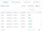 The Contracts dashboard displays a list of the contracts created in the system and a list of contract approval requests. The lists can be filtered on every column. Access records from the lists by double-clicking them.