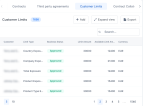 Customer Limits - displays a list of the existing customer limit records, a list of the customer limit approval requests and a button for adding new customer limits.