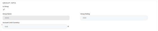 To define a group, select the checkbox Is Group from the Group&Limits tab of the Customer page, accessible through the Loan Management Operational > Customer Core menu. After you select the checkbox, the group name is automatically populated with the customer’s name and you can insert a rating and a limit currency for that group.