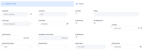 Expire Date - This field is automatically completed with the date when the limit expires, as calculated based on the values entered in the previous fields.