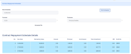 To see detailed information and the actual list of the installments, double-click the schedule. The Contract Repayment Schedule page is displayed with the selected schedule and a list with every schedule detail: