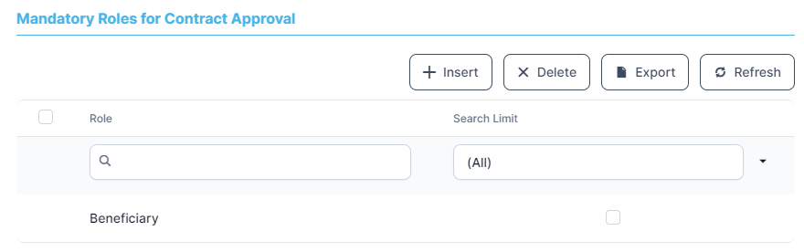 1. To add a participant, click Insert in the Contract Participants section of contract in Draft, Version Draft, or Approved status.