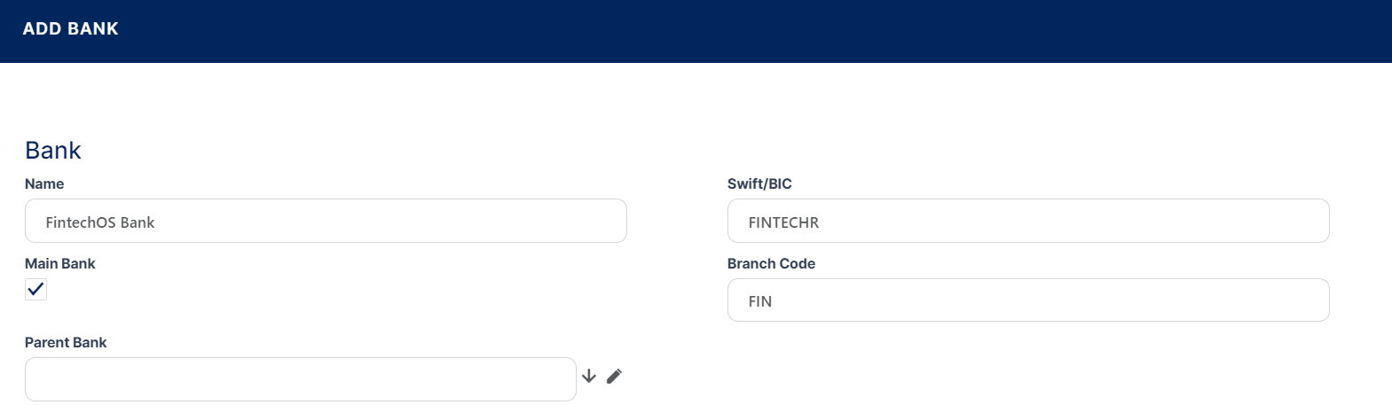Parent Bank - Select the parent bank of the new record if the newly entered bank is a branch.