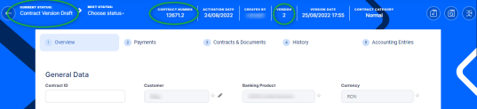 Edit the desired fields in the Overview tab. You can only edit a set of fields for contracts based on specific banking products.