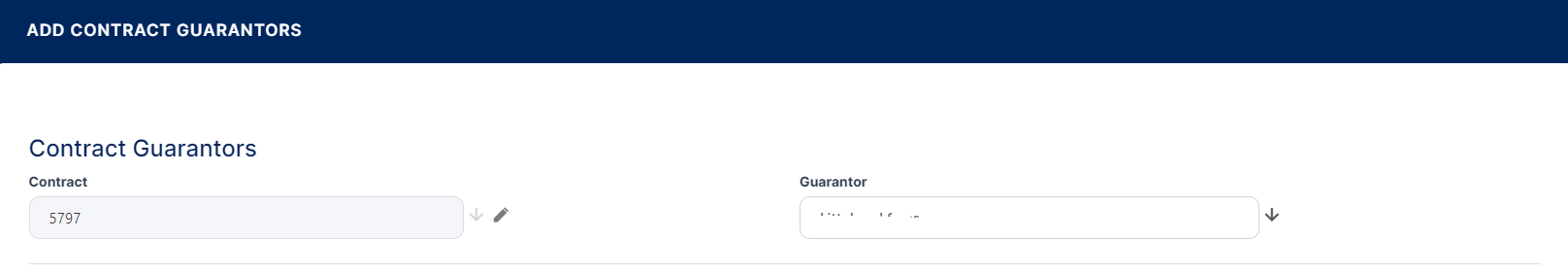 - Click the Insert button within the Contract Guarantor section.