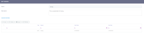 To edit a season, in the Seasons List page, double-click the record that you want to edit. The Edit Season page appears.