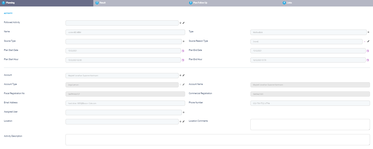 | Responsible User | No | Read Only | The person responsible of the campaign activity. |