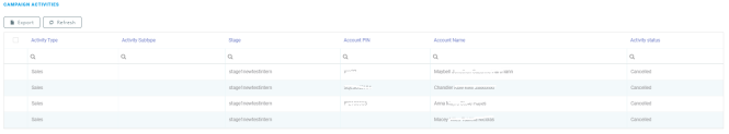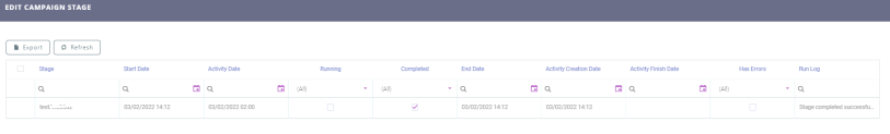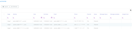 Activities can be viewed at campaign or stage level. In this tab, all the campaign activities generated at stage level are displayed.