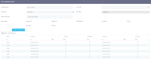 Click the Schedule tab and define the starting dates and end dates along with all the campaign stages. New campaign stages can be easily added or modified. Campaign stages have additional options that can be configured and support AB testing.