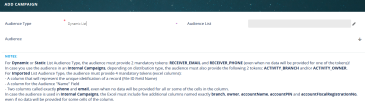 | Audience List | This field is read only. If the audience type is Imported, then the name of the audience list and the imported template is displayed. |