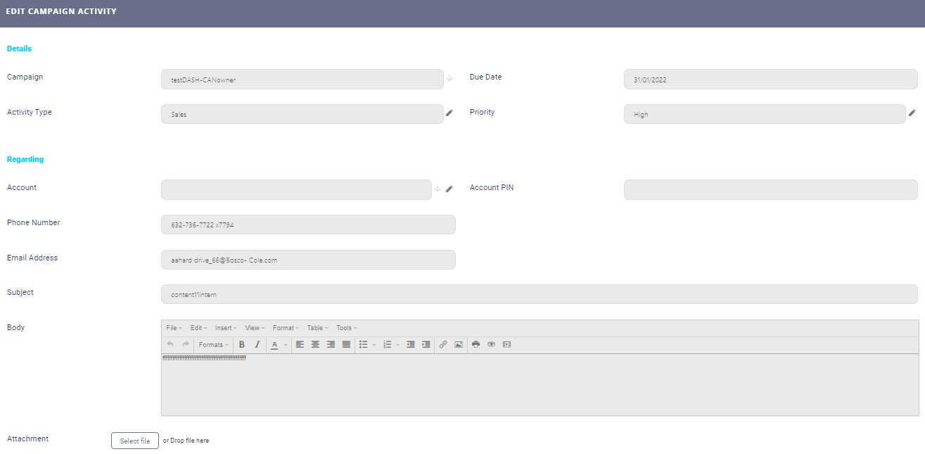 | Activity Type | No | Read Only | The activity type. Displayed only for Sales campaigns. |