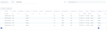 After setting the status reasons template for an internal campaign, sales or administrative campaign activities are generated. Internal campaign activities are generated after a campaign that generates internal activities is defined and approved. The person responsible for contacting the clients can access each campaign activity and based on the information presented on the activity level, the client is contacted. After the client feedback is received, the status of each campaign activity is updated. For both sales and administrative campaign types, the below data is displayed: