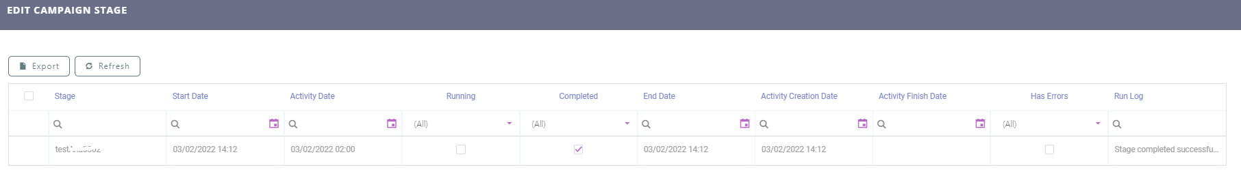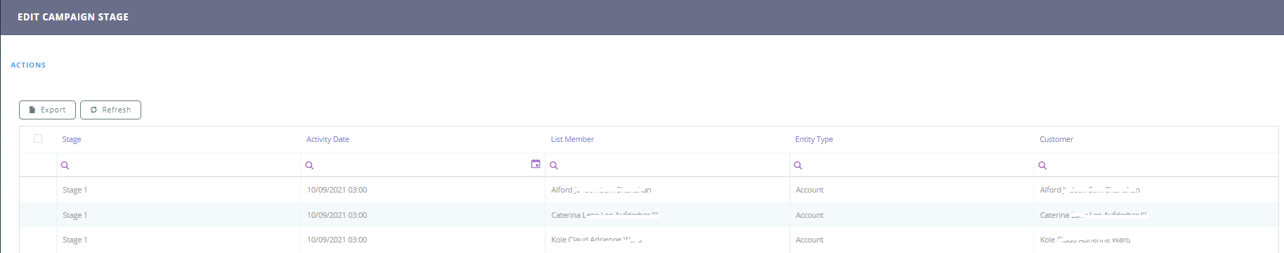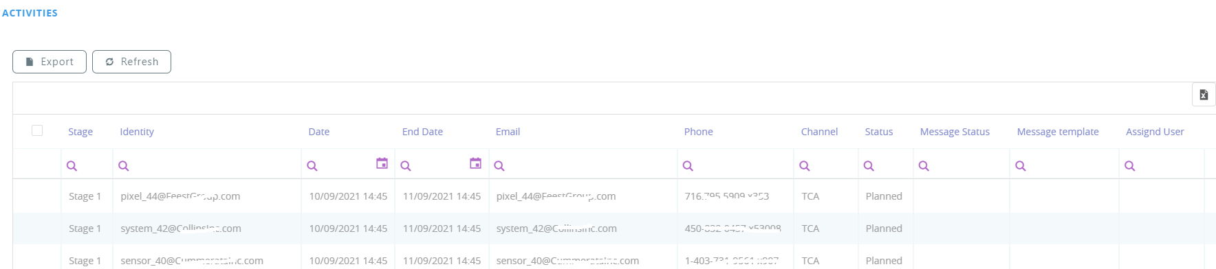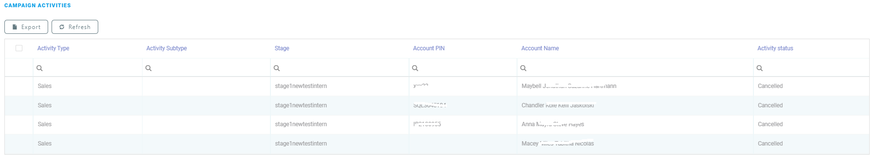 Activities can be viewed at campaign or stage level. In this tab, all the campaign activities generated at stage level are displayed.