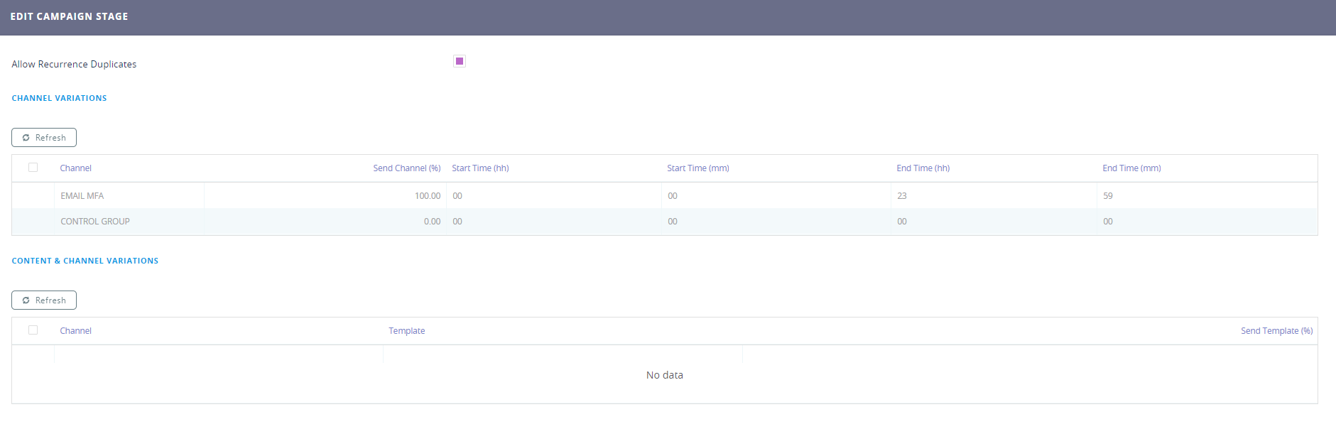 | Content and Channel Variations list | The proportion for sending differentiated communications of the same type. |