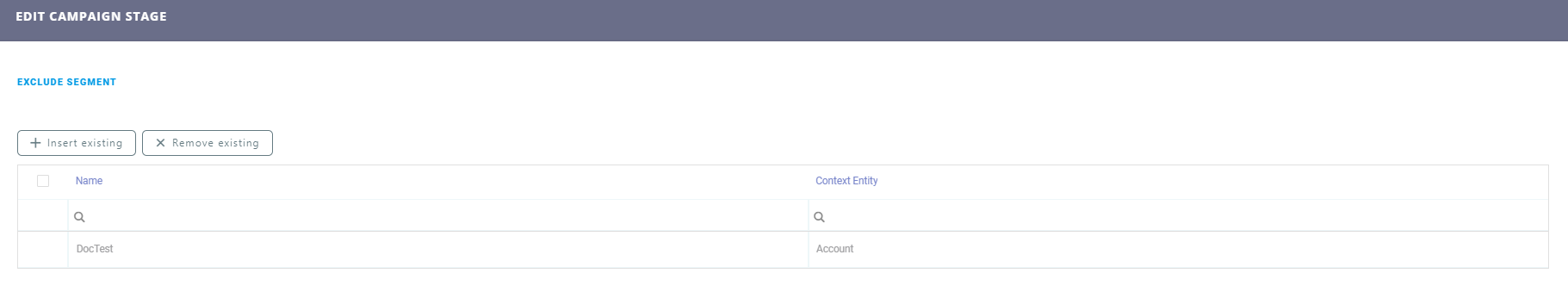 From the audience selected it is possible to eliminate certain people depending. Click the ''Insert existing'' and select from the pop-list the audience which will not receive the campaign messages.