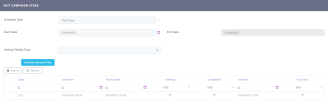 This section tab has configurations which apply to only one stage, the stage the user is creating. The stage configurations are found in the global Schedule section tab of the whole campaign.