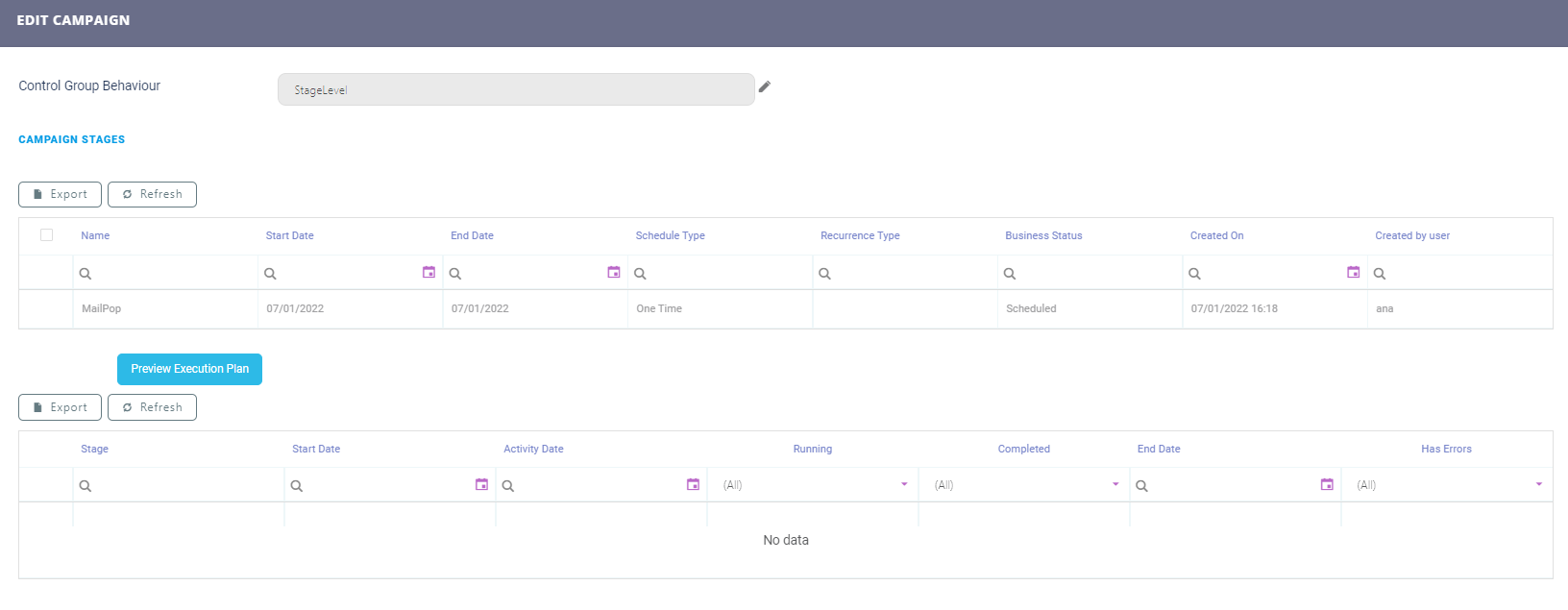 Campaign stages can be scheduled at Campaign Level or at Stage Level through the Control Group Behaviour field.